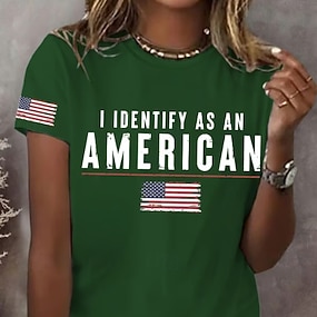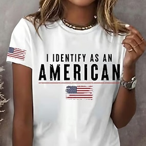 Giorno dell'Indipendenza Americana Per donna Maglietta Stampato Grafico Elegante Classico Casual Manica Corta Girocollo Top Regolari Quotidiano Uscire Weekend Bianco Estate Primavera
