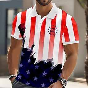4 luglio 2026 250° Per uomo Bandiera Americana Polo Manica Corta Magliette polo Bavero Casual Athleisure Abito da festa Stampa 3D Bottoni Estate Blu