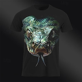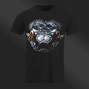 Maglietta grafica nera a manica corta per uomo con stampa audace di testa di serpente rettile