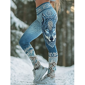 Per donna Leggings Vacanza Vintage Moda Lunghezza intera Vita Alta Grafico Animale Stampa Calore Termico Morbido Traspirante Elasticizzato Quotidiano All'aperto Vacanza Blu Verde Bianco sporco Color