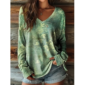 Per donna Maglietta Stampato Floreale Grafico Piante Vintage Classico Casual Manica Lunga Scollo a V Top Regolari Quotidiano Rosa Viola Arancione Verde Primavera Autunno