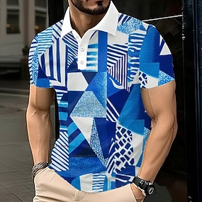 Per uomo Geometrico Polo Manica Corta Magliette polo Camicie con Colletto Business Casual All'aperto Athleisure Abbigliamento quotidiano Bottoni Stampa 3D Estate Nero Blu Verde