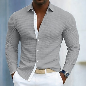 Per uomo Camicia Camicia a nido d'ape Camicia casual Camicia con colletto alla coreana Camicia con Bottoni Rosa Azzurro cielo Grigio Manica Lunga Semplice Collo alla coreana Casuale Quotidiano