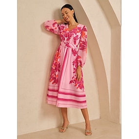Per donna Abito Midi Vestito T-Shirt Vacanza Compleanno Casual Spiaggia Uscire Vestibilità comoda Grafico Astratto Manica Lunga Bavero Blu Rosa scuro Verde Estate Primavera