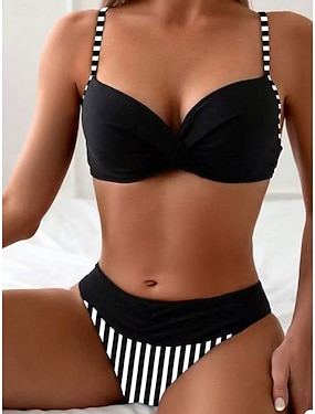Per donna Costumi da bagno Bikini Due pezzi Vita alta Costume da bagno Snello Senza schiena Vacanza Abbigliamento da Spiaggia A righe Scollo a V Senza Maniche Costumi da bagno