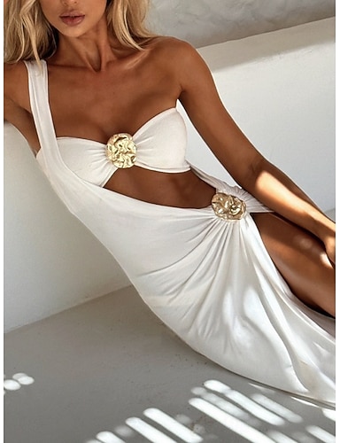 Per donna Costumi da bagno Bikini Tre Pezzi Birichino Costume da bagno Snello Senza schiena Elegante Vacanza Tinta unica Collo asimmetrico Senza Maniche Costumi da bagno