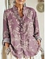 Per donna Camicia Camicia Boho Floreale Grafico Elegante Bohemien Vacanza Manica Lunga Scollo a V Top Regolari Quotidiano Ferie Uscire Viola chiaro Viola Azzurro Estate Primavera