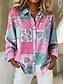 Per donna Camicia Bottoni Stampato Geometrico Vintage Elegante Moderno Manica Lunga Colletto a Camicia Top Regolari Quotidiano Blu Rosa Viola Verde Autunno Inverno
