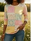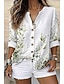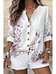 Per donna Camicia Stampato Blocco di colori Fiore Quotidiano Elegante Essenziale Mezza Manica Scollo a V Top Regolari Quotidiano Ferie Blu Verde Beige Primavera Autunno