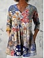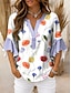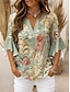Per donna Blusa Volant Stampato Floreale Grafico Vintage Quotidiano Elegante Manica 3/4 Scollo a V Top Regolari Quotidiano Ferie Abbigliamento da vacanza Blu Giallo Rosa Verde Estate Primavera