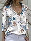 Per donna Blusa Stampato Floreale Vacanza Quotidiano Casual Manica 3/4 Scollo a V Top Regolari Quotidiano Ferie Uscire Blu Blu Reale Viola Verde Estate Primavera Autunno