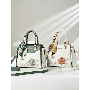 Borsa da donna con ricami floreali e foulard decorativo, in similpelle, disponibile in diversi colori, elegante e casual, perfetta per l'uso quotidiano, l'ufficio e le occasioni sociali.