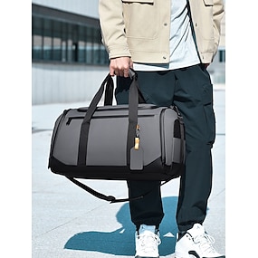 Borsa sportiva da uomo in nylon di grande capacità, nera e grigia, ideale per viaggi, palestra e weekend, con tracolla regolabile, versatile, perfetta per viaggi di lavoro, fitness e vacanze.