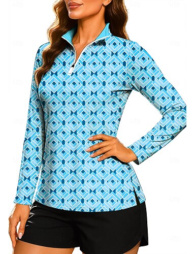 Per donna Geometrico Polo da golf Maglia da tennis Manica Lunga Stampato Zip a un quarto Pullover Protezione UV Elastico Traspirante Tennis Golf Pickleball Collo con zip Maglietta Polo Rosa Blu