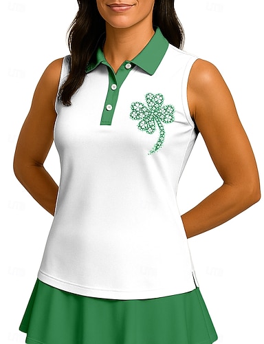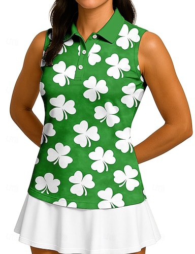 San Patrizio Per donna Trifoglio Maglietta sportiva Polo da golf Canotta Maglia da tennis Senza Maniche Floreale Bottoni UPF50+ Resistente ai Raggi UV Alta elasticità Traspirante Pallavolo Tennis Golf