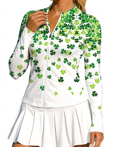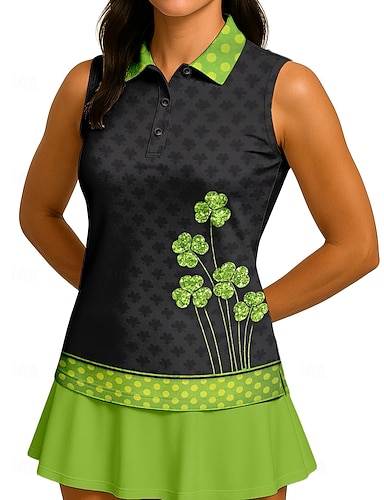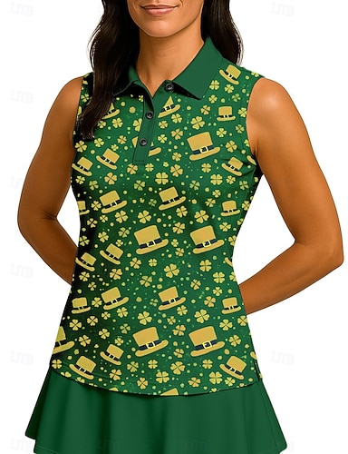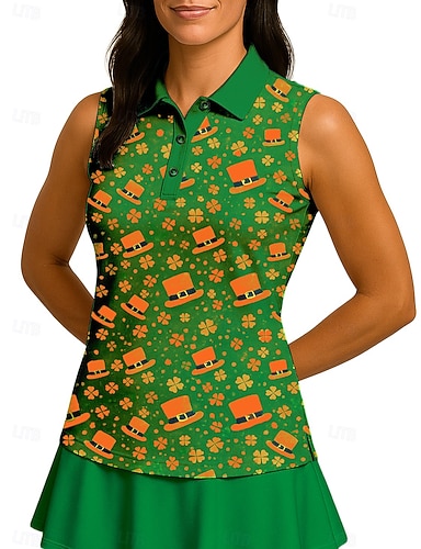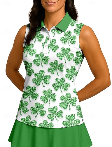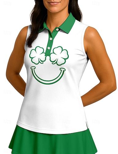 San Patrizio Per donna Lettere & Numeri Trifoglio Maglietta sportiva Polo da golf Canotta Maglia da tennis Senza Maniche Cerniera Floreale UPF50+ Resistente ai Raggi UV Alta elasticità Traspirante