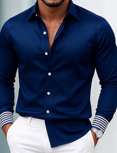 Per uomo Camicia in raso Camicia elegante Camicia non stiro Camicia con Bottoni Tinta unica All'aperto Affari Blu Nero Bianco Verde chiaro Manica Lunga Collo ripiegato Estate Primavera Abbigliamento