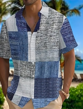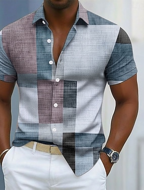 Per uomo Geometrico Blocco di colori Patchwork Camicia Camicia con Bottoni Manica Corta Moda Casual Vacanza Ferie Abbigliamento casual alla moda Estate Collo ripiegato Stampa 3D camicie con colletto