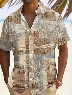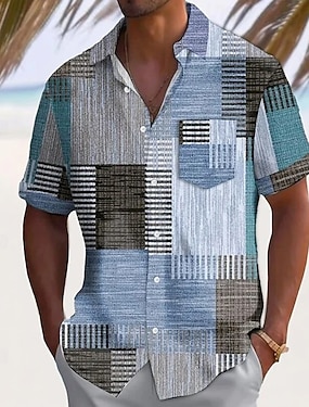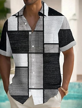 Per uomo Geometrico Griglia / Plaid Camicia Camicia con Bottoni Manica Corta Moda Casual All'aperto Vacanza Abbigliamento casual alla moda Estate Primavera Collo ripiegato Stampa 3D camicie con