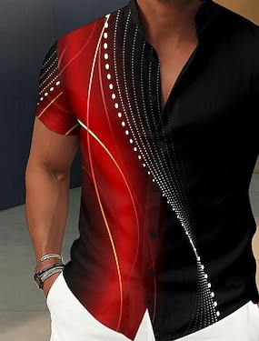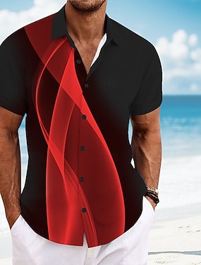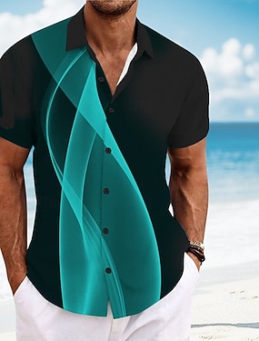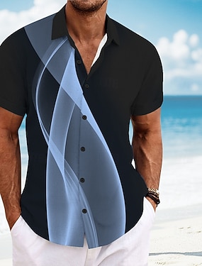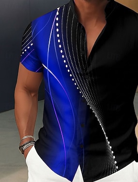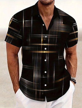 Per uomo Geometrico Sfumatura Con onde Camicia Camicia con Bottoni Manica Corta Moda Casual Quotidiano All'aperto Vacanza Estate Primavera Collo ripiegato Stampa 3D Camicia tipo lino Oro nero Nero