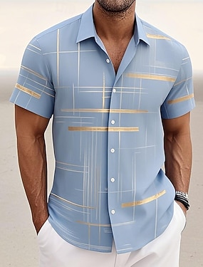 Per uomo Geometrico Sfumatura Linea Camicia Camicia Estiva Camicia con Bottoni Manica Corta Moda Casual All'aperto Vacanza Abbigliamento Quotidiano Estate Primavera Collo ripiegato Stampa 3D camicie