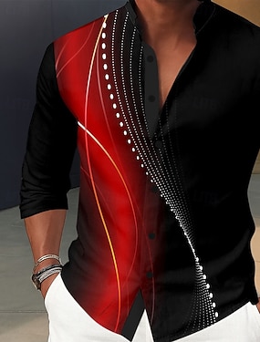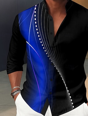Per uomo Geometrico Sfumatura Onde Camicia Camicia con colletto alla coreana Manica Lunga Moda Casual Abbigliamento Quotidiano Ferie Primavera Autunno Collo alla coreana Colletto alla coreana Stampa