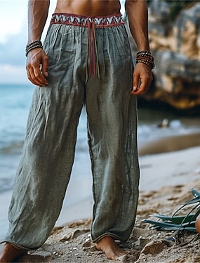 Per uomo Camicia Camicia di lino Stile vichingo Camicia Estiva Abbigliamento da spiaggia Semplice Vacanza Camicia hawaiana Bianco Vino Blu Grigio scuro Senza Maniche Scollo a V Estate Abbigliamento