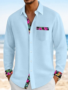 Per uomo Camicia Camicia di lino Camicia Estiva Abbigliamento da spiaggia Camicia con Bottoni Semplice Casuale Quotidiano Blu Nero Bianco Rosa Manica Lunga Colletto Primavera & Estate Abbigliamento