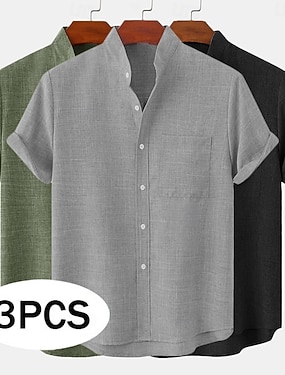 Per uomo Camicia di lino Camicia Estiva Camicia casual Camicia con colletto alla coreana Semplice Casuale Spiaggia Nero+Grigio+Verde Nero+Bianco+Grigio nero+bianco+verde nero+kaki+verde Manica Corta