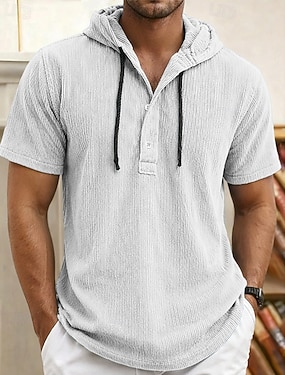 Per uomo Camicia Camicia di lino Camicia popover Camicia Estiva Abbigliamento da spiaggia Camicia con colletto alla coreana Semplice Vacanza Casuale Nero Bianco Giallo Rosa Manica Corta Henley Estate