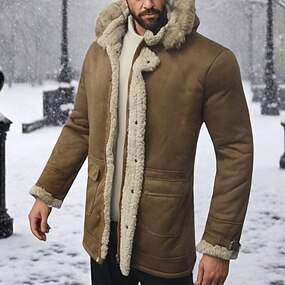 Per uomo Cappotto Invernale Cappotto di pelliccia Cappotto Vacanza Casuale Inverno Poliestere Morbido All'aperto Capispalla Abbigliamento Riscaldamento Comfort Tinta unita Tasca Bavero
