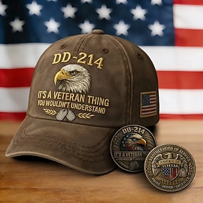 dd-214 cappello da baseball ricamato da veterano con 2 monete commemorative – disegno dell'aquila patriottica, ricamo "it's a veteran thing", set di monete della confraternita d'onore, regalo militare