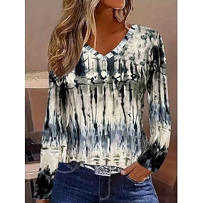 Per donna Maglietta Grafico Tinta a nodi Astratto Vintage Elegante Classico Manica Lunga Scollo a V Top Regolari Quotidiano Stampato Blu marino Primavera Autunno Inverno