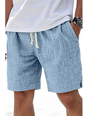 Per uomo Pantaloncini Pantaloncini di lino Pantaloncini estivi Pantaloncini da spiaggia Tasche A cordoncino Vita elastica Liscio Comfort Traspirante Lunghezza del ginocchio Informale Giornaliero Per