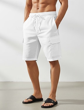 Per uomo Pantaloncini cargo Shorts Shorts di Lino Pantaloncini Estivi Shorts da Spiaggia Coulisse Elastico in vita Multi-tasche Semplice Traspirante Lunghezza al ginocchio All'aperto Spiaggia Vacanza