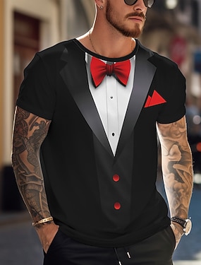 San Valentino Per uomo Grafico Cravatta a farfalla Manica Corta maglietta Stampa 3D Girocollo Camicia Quotidiano All'aperto Casual Feste Casuale Ferie Giallo Rosso Blu Primavera & Estate Abbigliamento