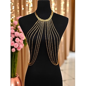 catena per il corpo multistrato in oro da donna: gioielli vistosi con catene drappeggiate per sfilate di moda, feste serali, abbigliamento da spiaggia e occasioni speciali