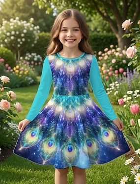 ragazze' 3D Grafico Pavone Abito Manica Lunga Stampa 3D Primavera Autunno Quotidiano Vacanza Feste Casual Principessa Bello Bambini 4-12 Anni Vestito Casual Abito a trapezio Lunghezza al ginocchio