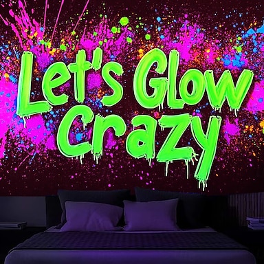 arazzo con luce nera, reattivo ai raggi UV, fosforescente, festa al neon, idee per feste, bastoncini luminosi, arazzo da appendere alle feste, murale per soggiorno, camera da letto