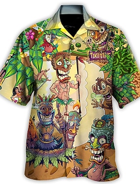 Per uomo Albero di Cocco Piante Tropicali Camicia hawaiana estiva Camicia con Bottoni Camicia Aloha Manica Corta Camicia Collo alla coreana Hawaiano All'aperto Vacanza Streetwear Blu Verde Cachi S M L