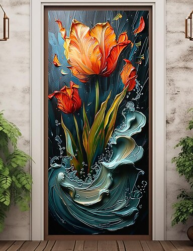 3d fiori porta copre decorazione murale porta arazzo tenda della porta decorazione sfondo porta banner rimovibile per porta d'ingresso coperta esterna decorazione della stanza di casa fattoria