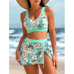 Per donna Costumi da bagno Tankini Gonna Costume da bagno Elegante Vacanza Floreale Grafico Scollo a V Senza Maniche Costumi da bagno