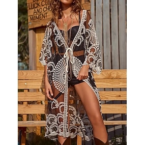 Per donna Costumi da bagno Copricostume Costume da bagno Pizzo Rete Vacanza Abbigliamento da Spiaggia Floreale Scollo a V Manica Lunga Costumi da bagno