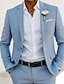 Uomo Smoking Completi in Lino Matrimonio in Spiaggia Matrimonio Azzurro cielo Verde salvia Primavera, Autunno, Inverno, Estate Tuta Bavero classico Moda Formale Tinta unita Vestibilità standard 3