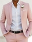 Uomo Smoking Completi in Lino Matrimonio in Spiaggia Feste Rosa Primavera, Autunno, Inverno, Estate Tuta Bavero a lancia Moda Casual Tinta unita Vestibilità standard 2 pezzi Monopetto Due Bottoni