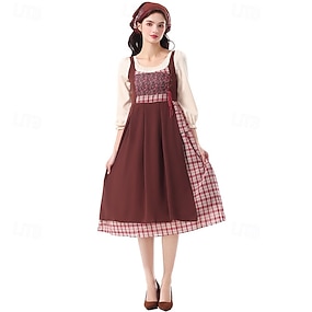 250° anniversario USA 19° secolo anni 1800 Abito da prateria Set cuffia e grembiule Lunghe Ragazza pioniera Coloniale Pioniere Guerra rivoluzionaria Costume Per donna Halloween Carnevale 4 luglio