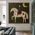 dipinto a olio vintage western con cowboy e cavalli, stile folk, prateria notturna, decorazione murale, arte equina rustica con motivo a stelle, arte retrò dipinta a mano