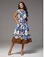 Abito lungo donna natalizio a linea plissettato casual boho daily appuntamenti uscite vestibilità regular grafica maniche lunghe scollatura a V bianco blu autunno inverno