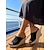 Eleganti sandali con zeppa neri da donna: sandali con plateau scintillanti e perline, con comoda suola in paglia, perfetti per crociere e feste in yacht. &abbigliamento da sera per località estive