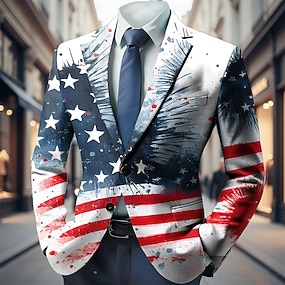 Giorno dell'Indipendenza Americana Per uomo Bandiera Americana Giacca blazer Cappotto Di tendenza Confortevole Traspirante Artistico Casual Casuale Quotidiano Festival Tasca Stampa 3D Bottoni Tutte
